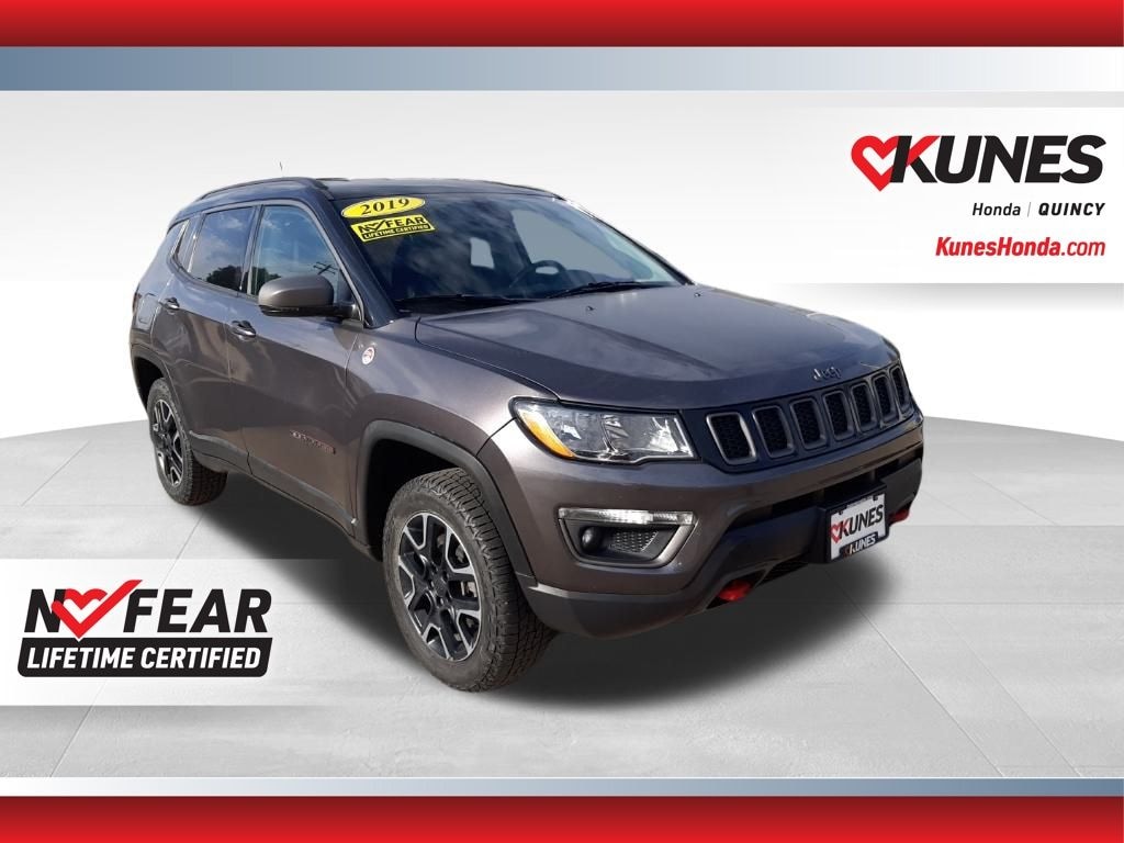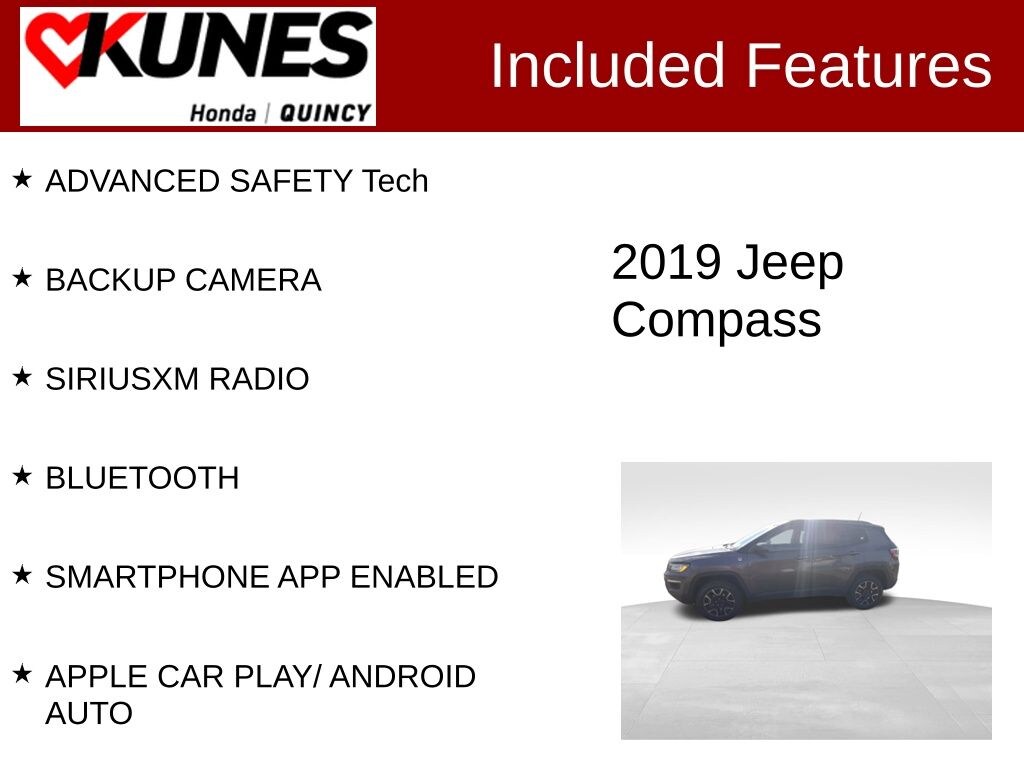 • 2019 Jeep Compass Trailhawk in Granite Crystal Metallic with Ruby Red/Black interior