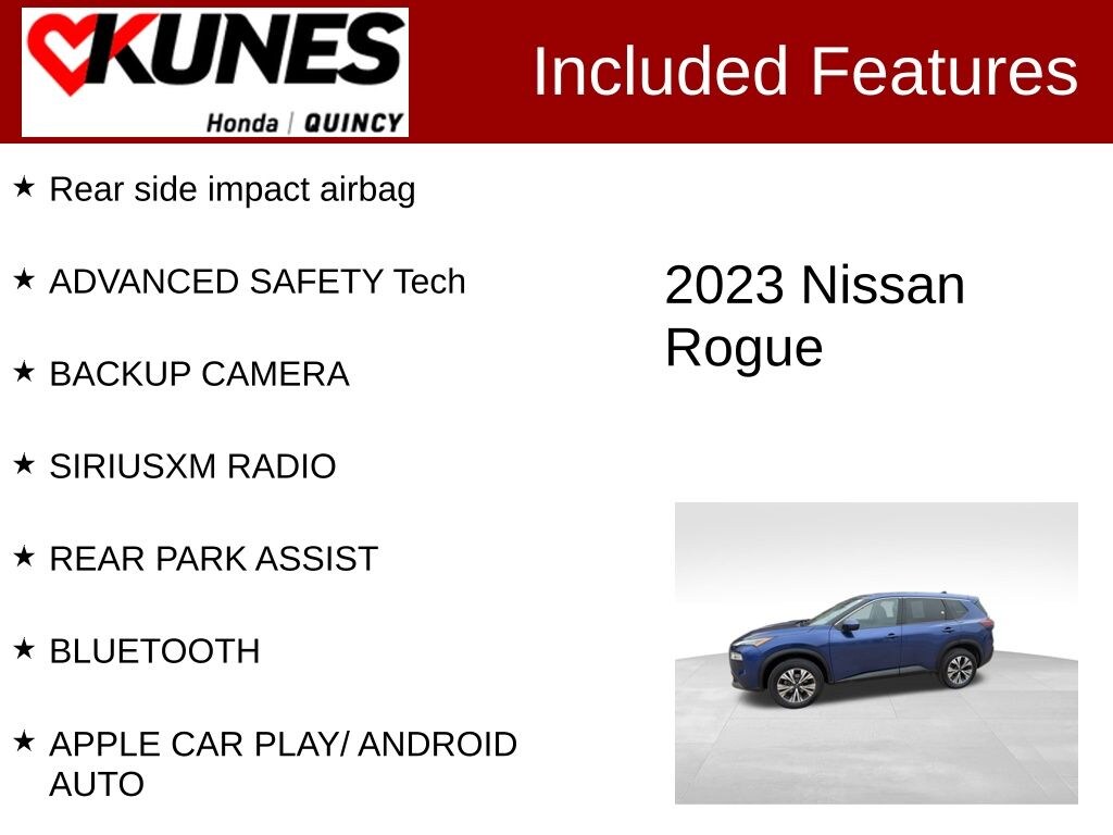 CARFAX One-Owner. Caspian Blue Metallic 2023 Nissan Rogue SV AWD CVT with Xtronic 1.5L I3 Turbocharged DOHC 12V LEV3-ULEV50 201hp ADVANCED SAFETY Tech, BACKUP CAMERA, SIRIUSXM RADIO, REAR PARK ASSIST, BLUETOOTH, APPLE CAR PLAY/ ANDROID AUTO, AWD, Rear side impact airbag. 28/35 City/Highway MPG